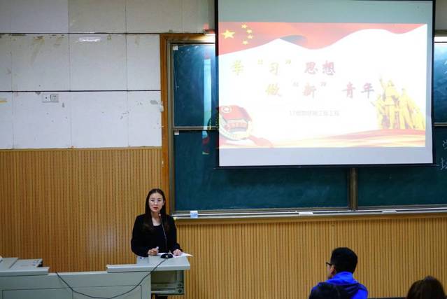 郝阳围绕习近平新时代中国特色社会主义思想,从“习近平新时代中国特色社会主义思想”由来、核心要义、丰富内涵、如何践行四个方面进行讲述。关于“如何践行”这一方面,他指出,要将个人与国家联系,在学习上,要树立“为实现中华民族伟大复兴梦而学习”的远大志向;在生活中,要坚定“四个自信”,深化四个认识;在学生工作上,要秉承一颗奉献的心,积极为学院师生做好服务。