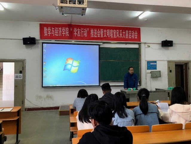 本网讯(通讯员 王聪)11月4日中午,数学与经济学院在十号楼10108教室召开“学友行动”推进会暨文明寝室风采大赛启动会,数经院分党委副书记汪平、分党委委员冯媛媛参加,学工办主任朱玉主持。