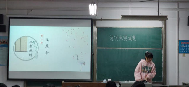 为弘扬我国底蕴深厚的诗词文化,文学院学生会监察部举办了“诗词大赛“。经过初赛以及复赛层层筛选,在11月6日星期五举办了“诗词大赛”决赛。由冯静同学担任主持人,共有18名同学参加决赛。