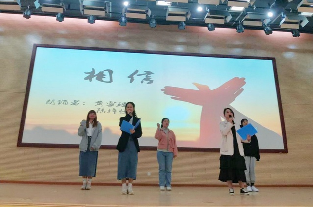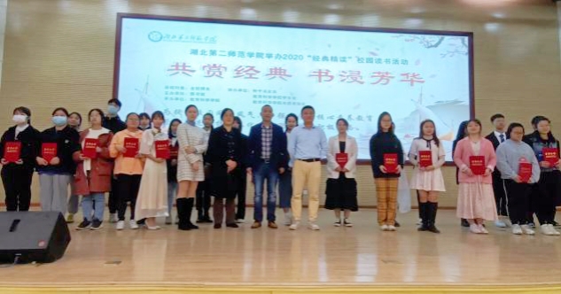 随后,五组选手分别朗诵诗歌。计算机学院牛欣怡朗诵《在山的那边》,阐述了理想的实现源自不懈奋斗;数学与经济学院梅伊婷朗诵《暗夜争花开》,歌颂了在疫情中付出的英雄人物;教科院陆梓悦、黄雪瑶朗诵《相信》以呼吁大家相信希望;文学院陈雨欣朗诵《将进酒》,激励学生勇于面对困难;教科院曹存煜、黄楠楠朗诵《我的南方和北方》,赞美了祖国的大好河山。接着,主持人公布“诗入人心”诗歌朗诵比赛、“书香达人”名著知识竞赛与“赏书悦目”读书演讲比赛的获奖名单并请获奖者上台领奖与老师合影留念。