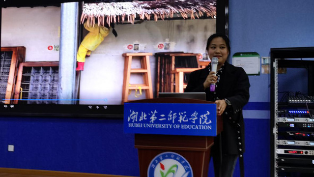 我校优秀学子、安吉游戏幼儿园教师朱方舟担任主讲人。讲座活动上,她与学弟学妹分享安吉游戏的精神内核和指导策略。朱方舟首先通过提出问题——“你眼中的安吉游戏是什么样?”,以激发在座学生的兴趣与思考。本次讲座围绕“安吉游戏是什么”、“游戏精神下的一日生活”、“安吉户外活动”等内容展开,将真实的幼儿日常生活搬上大荧幕,同时也将“儿童在前,教师在后”的教学理念传递给在座学生。