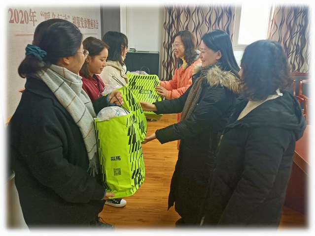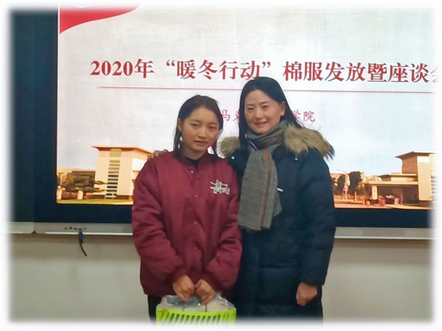 活动伊始,在座领导老师向学生们发放爱心棉服,并与同学们合影留念。