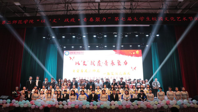 本网讯(融媒体见习记者丁舟雪 陈梦婷 陈方圆 李岩茸)12月4日晚,我校“以‘文’战疫,青春聚力”第七届“青窗鸢尾启师苑,一路笙歌花满天”大学生校园文化艺术节闭幕式于大礼堂举行。校团委副书记陈扬、马克思主义学院党总支副书记宋平、校团委老师、各学院分团委书记、副书记参加此次活动。