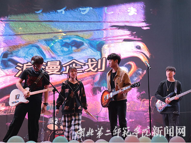 《waiting for you》《草原情怀》《大鱼》 《歌曲串烧》 《交换余生》《美人关》 《下山看走秀》 《仰望星空》 《追寻》 《醉春风》 朗诵《最可爱的人》 乐队表演《无人的海边》 群舞《激楚》(摄影 胥珊)