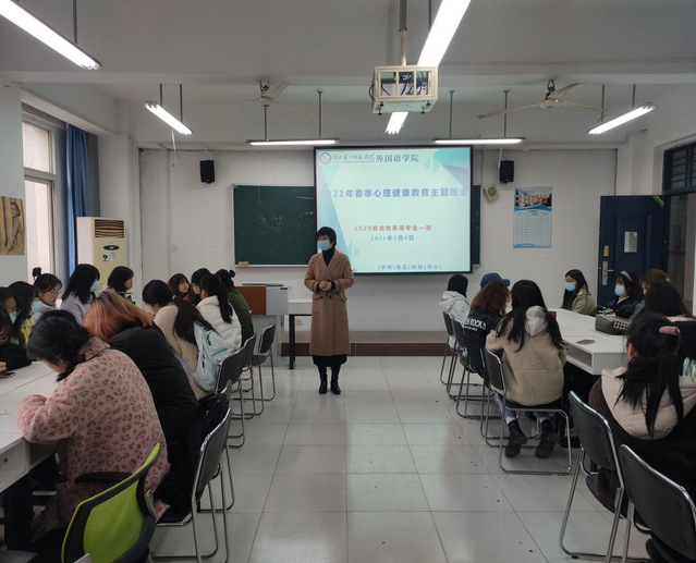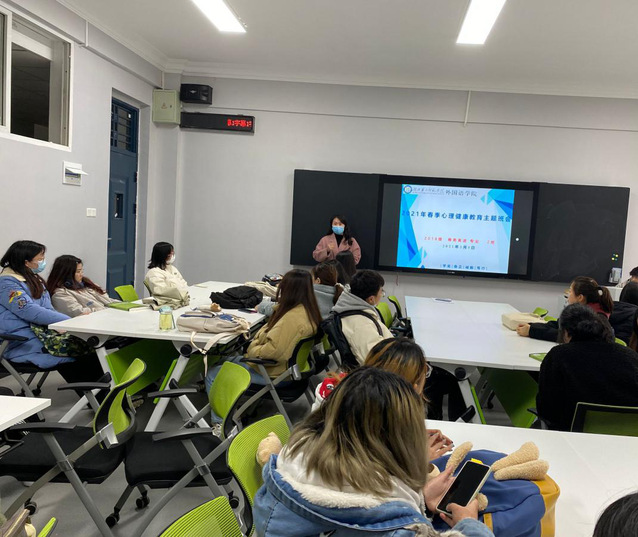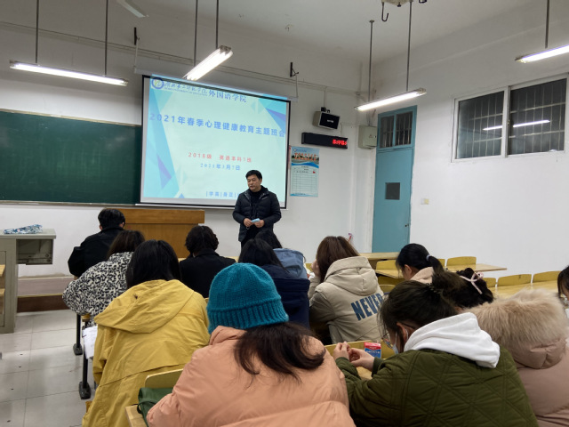 本网讯(通讯员 冷晓婧 周子怡)为进一步增进自我了解、探索自我的能力,解决成长、学习上的诸多困惑,外国语学院于3月8日至3月16日组织开展各班有关心理健康主题的班会,外国语学院全体学生参会。