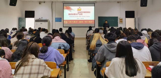 本网讯(通讯员 乔蓓)3月18日中午,外院分党委副书记吴少明在3号报告厅开展以“加强党风廉政建设,推进全面从严治党”为主题的学习活动。外国语学院第14期入党积极分子全体学员参加。