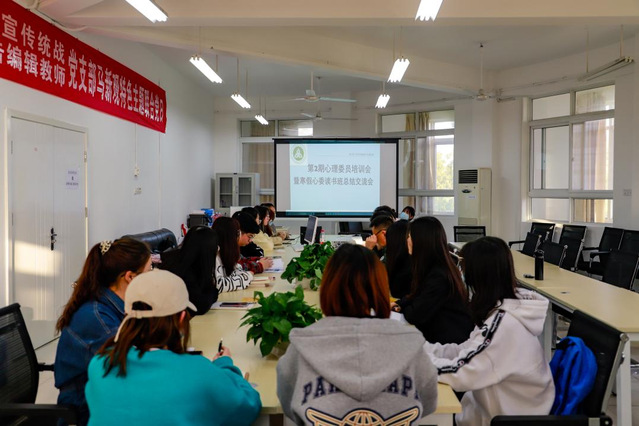 本网讯(融媒体见习记者 徐晨曦)3月24日下午,新闻与传播学院心理健康协会(以下简称心协)在一号楼四楼会议室开展第2期心理委员培训暨心理委员寒假读书班总结交流会,会议由心协成员杜小慧主持。心理辅导站站长孟黎明,辅导员张帆、徐梦媛,心协全体成员及各班心理委员参加会议。