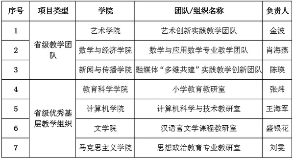 本网讯(通讯员 李茜)近日,省教育厅公布了2020年本科高校省级教学团队及优秀基层教学组织名单。我校获批艺术创新实践教学团队等3个省级教学团队和小学教育教研室等4个优秀基层教学组织。