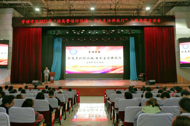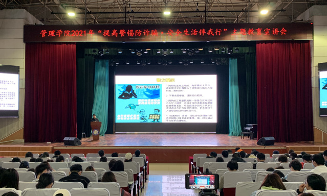 据悉,本次宣讲会,管理学院组织了涵盖各专业、各年级的近800名学生现场学习防诈骗相关知识。财务处副处长宋金江,综保处治安科主任熊进、干事刘伟及学院全体辅导员、班主任参会活动。(编辑 邓爽)