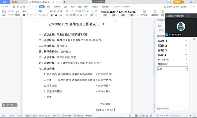 本讯网 (通讯员 聂刚刚)为全力做好2021届毕业生就业工作和团学工作,推动毕业生高质量就业,服务学生团员关系转接,4月7日晚,我院于线上召开了2021届毕业生学生工作会议。学院副书记夏永祥、学工办主任李京、学院团委副书记骆夏君、学院就业创业指导老师聂刚刚、毕业班辅导员郑乾、黄婷婷、张豫及2021届全体毕业生出席会议。会议由李京主持。