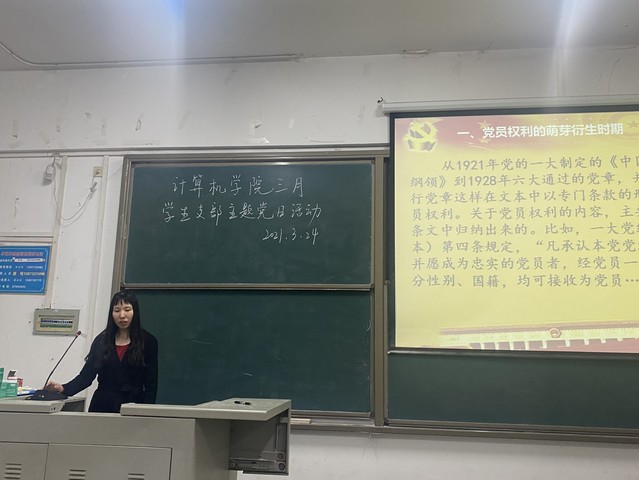 本网讯(通讯员 张智琪)计算机学院学生党支部三月主题党日活动于3月24日中午顺利举行。学院学生第二党支部书记熊军平主持活动,学生第一党支部书记邓家桃及全体学生党员参加活动。