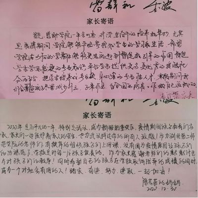 各位家长都积极配合我院疫情防控工作,纷纷在信上留言。有的家长对学校和学院全体老师以学生为中心,高度重视学生学习、成长和发展表示感谢;也有家长表示将督促孩子遵守法律法规,重视个人防护,注意健康作息,保持身心健康,强化学习实践,做好新学期学业规划,以良好积极的心态迎接新学期的到来:更有家长对实现国家复兴的伟大事业的信心。