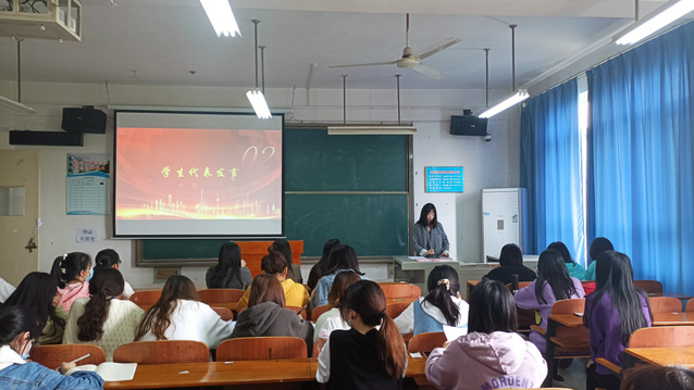 严雯作总结发言。她充分肯定了20届各部门学生干部在上一学年各项工作中所取得的成果,并对下一届学生干部提出了更高要求,希望他们在未来的工作中更加积极主动,注重工作的规范性、精准性,从而更好地服务于全院师生。