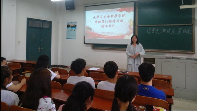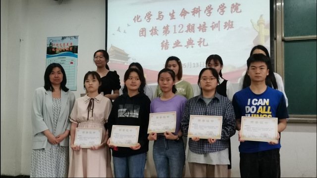 本网讯(通讯员 郑先娅)5月13日下午,我校化学与生命科学学院(以下简称“化生学院”) 团校第12期培训班结业典礼在S6201教室圆满落幕。化生学院党委副书记雷晓林、分团委书记宦忠虎参加本次活动为优秀学员颁奖。