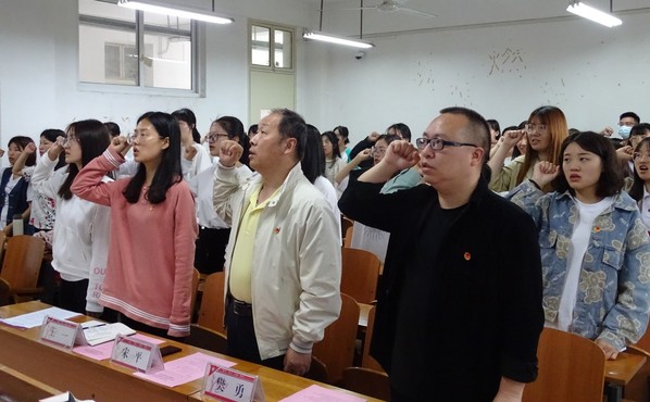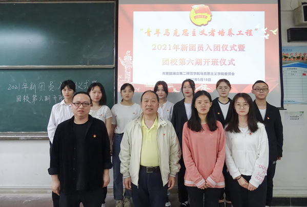 本网讯(通讯员 粟永硕)5月18日中午,马克思主义学院举行2021年新团员入团仪式暨团校第六期开班仪式。我院党总支副书记宋平、分团委书记樊勇、副书记王一、分团委学生副书记张敏敏参加仪式,2019级思想政治教育1班谌鹏程主持仪式。