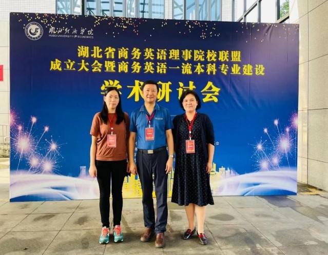 本网讯(通讯员 刘敏)5月15日,中国对外贸易经济合作企业协会商务英语(以下简称“商英”)专业委员会湖北省商英理事院校联盟成立大会暨商英一流本科专业建设学术研讨会在湖北经济学院召开。湖北省高校有关人员以及厦门亿学软件有限公司等6家企业代表参加了会议。作为“湖北省商英理事院校联盟”成员之一,我校外国语学院院长刘晖、商英系主任孙玲燕和教师代表刘敏参加了此次大会。