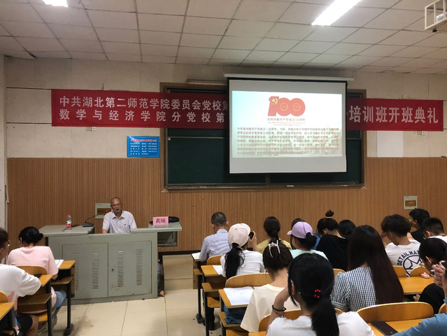 本网讯(通讯员 王聪)6月2日中午,数学与经济学院(以下简称“数经院”) 在6号阶梯教室召开学院分党校第7期入党积极分子培训班,校党委常委、副校长黄颂为数经院入党积极分子讲授第一课——《穿越百年党史感悟思想伟力》。
