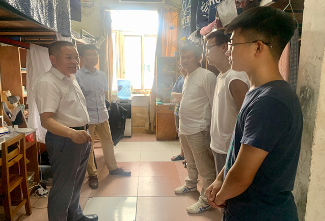 检查前,金殿中强调,要看寝室“原貌原态”,针对出现的问题要在“源头上找原因”。检查过程中,他着重检查了寝室文明公约制定和落实情况,详细查看了环境卫生、安全用电、走廊垃圾堆放等事项。