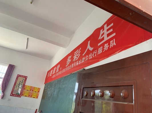 团队2019年张贴的横幅仍留在走马小学的教室内