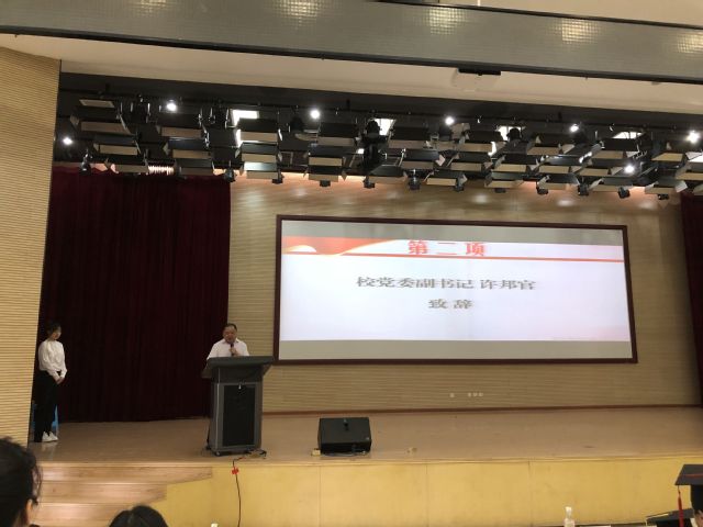 校党委副书记许邦官致辞。他谈到在过去的四年中,教科院在老师与同学们的共同努力下获得了高质量的发展。不管毕业生们走到哪里,他们始终流淌着母校的基因。致辞最后,许邦官激励毕业生们在未来的人生路上,创造属于他们的辉煌!
