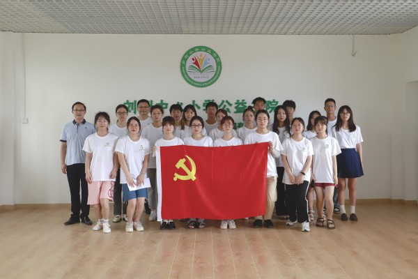 全体书院党员前往还在建设中的刘洲中心小学公益书院,面对党旗重温入党誓词,其他非党员队员参加合影。