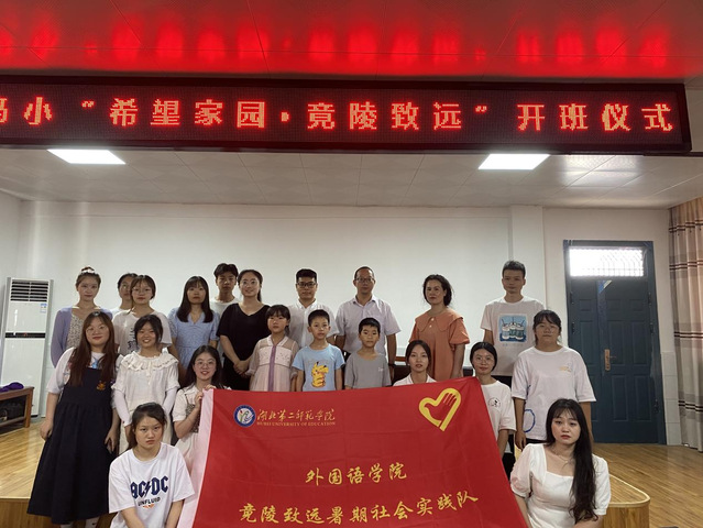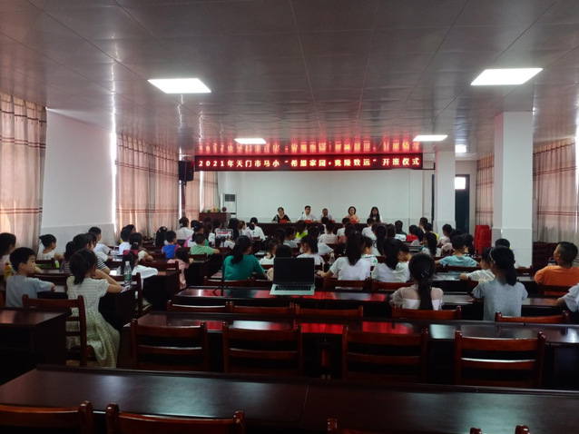 本网讯(通讯员 宋婉琪)7月13日,湖北第二师范学院“竟陵致远”三下乡社会实践队(以下简称支教队)在天门市马湾镇马湾小学会议室举行了2021年天门市马湾小学“希望家园·竟陵致远”开班仪式。团天门市委副书记刘小寒、湖北第二师范学院外国语学院分团委副书记钱晓琳、镇团委书记万达文、马湾小学老师郑丽荣、“希望家园”全体学生及家长代表、支教队全体队员参加仪式,支教队队长石雨欣主持。