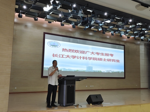 本网讯(通讯员 罗坤)9月17日上午,长江大学计算机科学学院2022年硕士研究生报考动员宣讲会在我校新图书馆2号报告厅举行,该学院副院长向宇、文汉云教授、张健博士一行参与宣讲,我校计算机学院副院长王海军主持活动,学院毕业生参加会议。