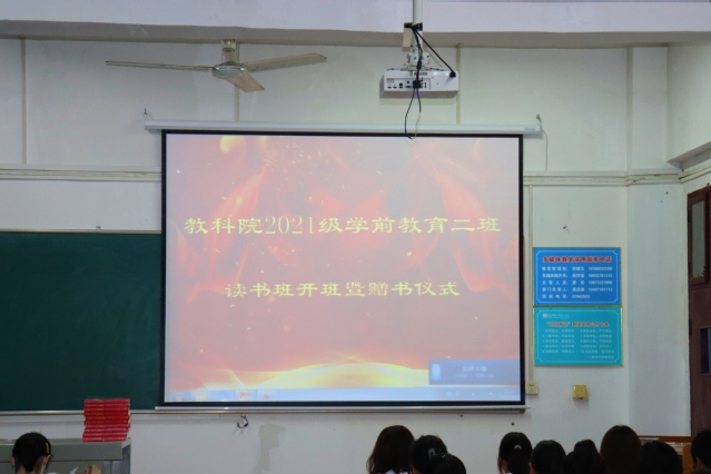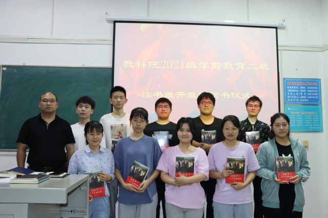 本网讯 10月5日,为深入推进学院新生思想政治教育,坚定理想信念,筑牢初心使命,进一步提升青年学生的文学核心素养,教育科学学院2021级学前教育2班在5407教室举办了读书班开班暨赠书仪式。班级辅导员魏豪、21级学前教育2班全体学生参加活动,开班仪式由黄灵奕主持。
