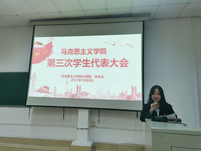 本网讯(通讯员 张晓云)10月8日中午,马克思主义学院于旧图书馆3号报告厅召开第三次学生代表大会,马克思主义学院党总支书记林志红、院长黄红发、党总支副书记宋平、分团委副书记王一、校学生会代表黄一帆、体育学院学生代表赵源棋,主席团成员候选人、学生代表候选人以及2020级、2021级思想政治教育专业全体学生参加会议。
