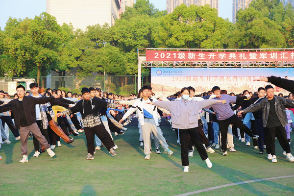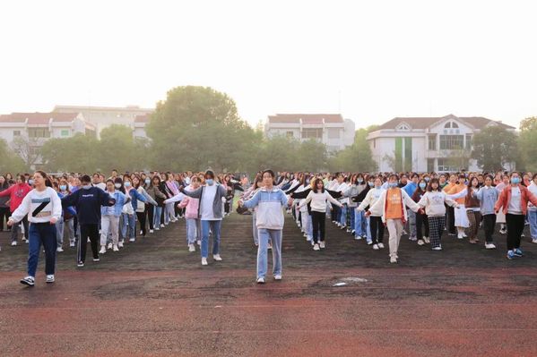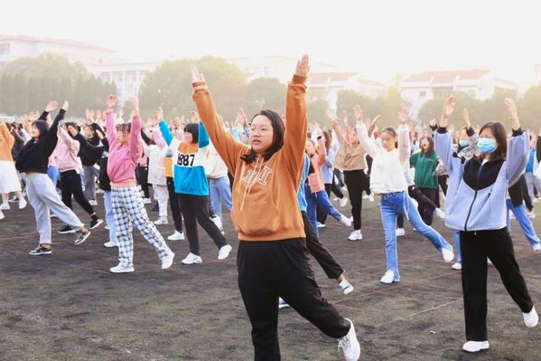 同学们精神抖擞,在两位领操同学以及各班文体委员的带领下,有序的进行广播体操的学习锻炼,整齐划一且有力的动作的尽显管院学子的风采。