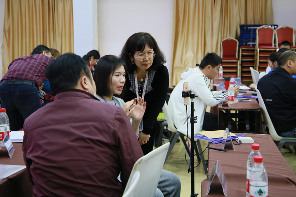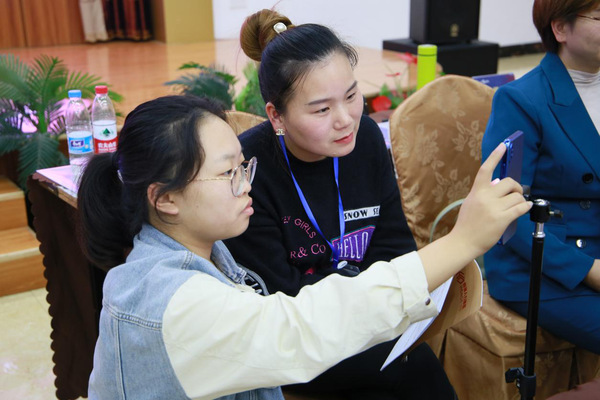图为陈瑛老师指导学员进行抖音直播,学员在陈瑛老师的帮助下快速进入直播状态且直播情况顺利