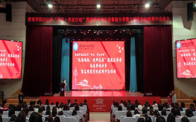 本网讯(通讯员 陈琛)11月10日下午,管理学院2021年“师友•学友行动”国奖获得者先进事迹分享暨文明寝室创建期中总结会于大礼堂举行。活动以“头雁领航•使命在肩”为主题。学工部部长金殿中、校团委书记文敏、财务处处长王诗龙、人事处副处长姜娜、财务处副处长宋金江等相关职能部门领导参加会议。