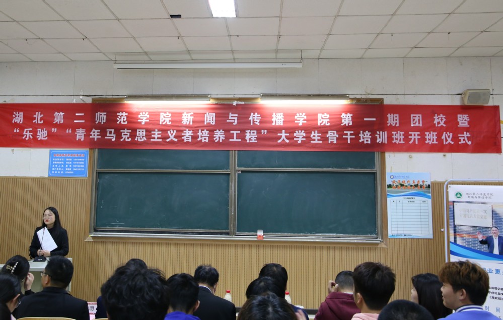 本网讯(通讯员 李瑞鑫)11月18日下午,新闻与传播学院(以下简称“新传学院”)在阶梯教室1举行第一期团校暨“乐驰”“青年马克思主义者培训工程”(以下简称“青马工程”)大学生骨干培训班开班仪式。新华社高级记者、湖北分社原纪委书记、现湖北老新闻工作者协会主席方政军,武汉乐驰传媒有限公司校园部总监陶建,新传学院党总支书记徐晓,学工办主任、分团委书记孟黎明参加仪式。新传院全体辅导员及团学组织全体成员参加,分团委老师覃倩主持仪式。