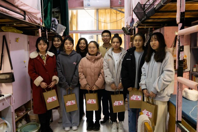 本网讯(通讯员 司子仪)在2022年硕士研究生入学考试即将到来之际,为缓解管理学院考研学子考前的学习压力,帮助他们以更好的状态迎战考试。12月7日中午,管理学院党委副书记刘兴,副院长蔡璐,学工办主任周慧东以及全体辅导员老师走访了学生宿舍,重点对22届考研毕业生开展“研路关爱,暖心前进”活动,给考研学子送去“考研加油包”,同时就冬季寝室用电及防火防盗等安全工作进行检查,进一步固化校园文明寝室创建成效。