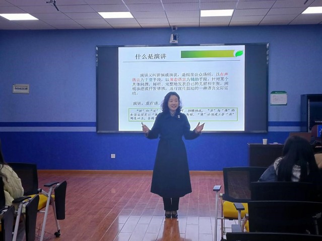 接着,彭江帆老师从演讲稿的撰写、声音的练习表达以及辅助手段的运用三个方面讲解该如何做好演讲工作。她为同学们深入分析如何让演讲更加有规范性、感染性和流畅性。培训最后,彭老师还重点培训了演讲的基本礼仪,比如演讲时的手势、语调、神态等。