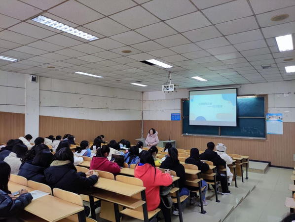 本网讯(融媒体见习记者 倪荣鑫)12月23日下午,我校大学生心理健康教育中心在阶梯教室2举办“第十二期心理沙龙——压力管理”活动。大学生心理健康教育中心副主任郑婧担任主讲人。各学院心理委员、学生代表参加活动。