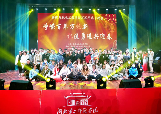 本网讯(通讯员 柳宇轩 熊鑫)12月23日晚,物机院于我校大礼堂举办2022年元旦晚会。党委常委、副校长黄颂,学工部部长金殿中、副部长卢郅睿,团委书记文敏,科研处副处长李贤智、张敏;物机院党委书记王志民、副书记陈扬,院长李莎,副院长吴建兵、李杰莅临现场观看晚会;相关职能部门代表,物机院其他领导老师,院学生参加晚会。