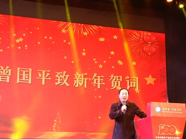 院长曾国平致辞,总结了学院2021年取得的成绩,并对2022年进行了展望,也为师生送上了元旦祝福。