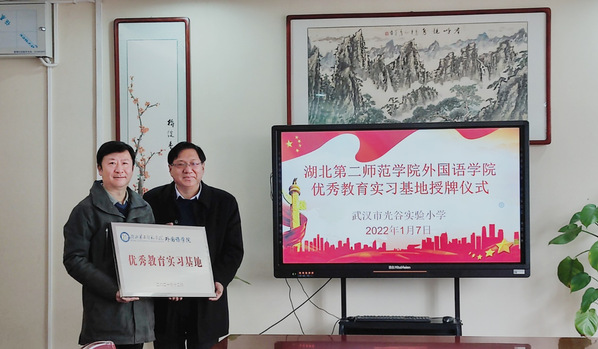 本网讯(通讯员 鲁维佳)为进一步强化人才培养院校协作、推进师范生教学技能培养,1月7日,外国语学院(以下简称“外院”)分党委书记胡崇芝、院长刘晖和副院长胡波一行走访外院光谷地区实习基地,并向优秀教育实习基地授牌。