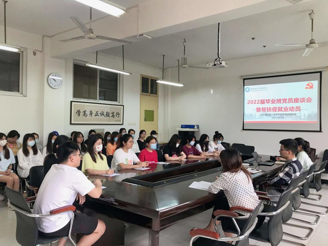 座谈会伊始,杨兰芳结合当前就业形势和就业政策进行了分析和解读,对毕业生党员寄予殷切希望:一是希望全体毕业生党员要树立正确的择业观和就业观,充分把握就业机会,争做就业先锋。二是要充分发挥党员先锋模范作用,深入群众,积极带动寝室、班级同学尽早就业。三是要充分发挥桥梁纽带作用,加强与毕业班辅导员、专业课老师的沟通交流,多方位协调努力,切实做好毕业生就业工作。