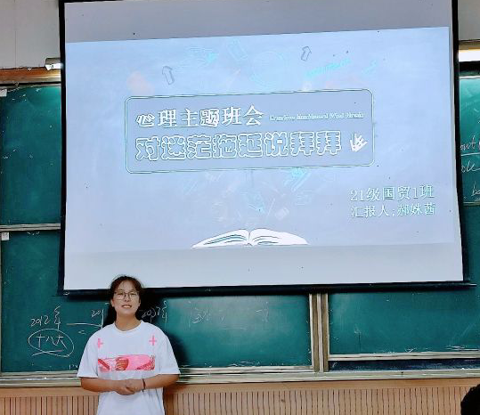 最后,郑婧呼吁心理委员们要充分发挥心理主题班会的三个作用:一是将心理健康教育工作进一步扎深扎实;二是起到班级建设作用;三是能够帮助同学们调整自身情绪。她希望各班级能够开展更多更好的心理主题班会,为同学们带来更多轻松愉快的班级活动。