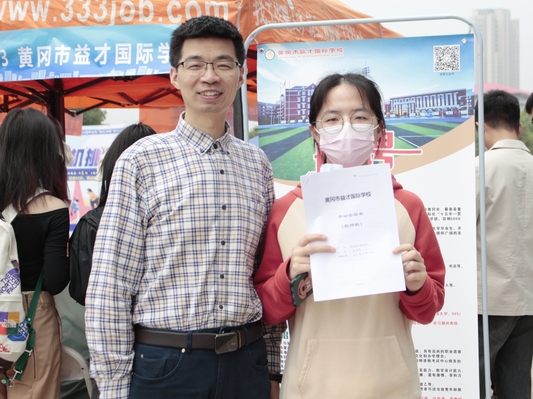 聚焦招聘会现场,毕业生们手持自己精心准备的简历、自荐信,穿梭于人流之中,主动与招聘单位工作人员进行深入交流,仔细了解用人单位的基本情况,并积极介绍自身学习、实践、工作等方面的情况。18级酒店专业吴诗怡同学在辅导员、学院党委副书记刘兴的陪同引导和鼓励肯定下,更加坚定了应聘的信心,很快在现场与蕲春县一所高中顺利签订了《劳动就业合同》。周边的同学纷纷围上向吴诗怡送上祝愿。刘兴也借此寄语广大毕业生:“怀揣梦想、保持激情,长远规划、认真实践,为未来步入社会奠定坚实的基础,祝愿他们早日找到心仪的工作。”
