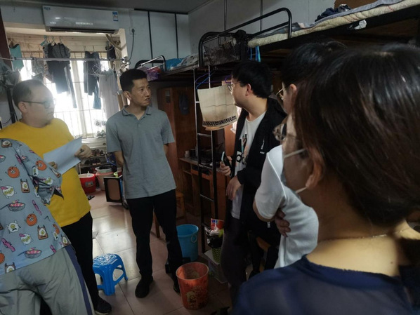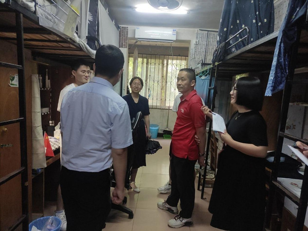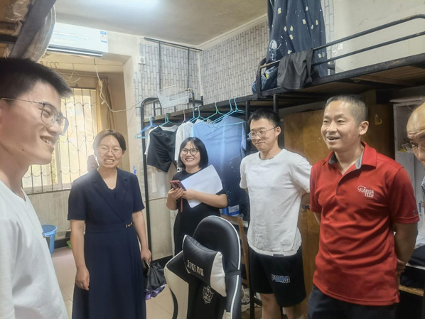 本网讯 6月16日下午,物理与机电工程学院(以下简称“物机学院”)党委书记王志民,院长李莎,党委副书记陈扬,副院长吴建兵,副院长李杰,毕业班班主任,辅导员走访2022届毕业生寝室,为即将离开母校的毕业生送上亲切的问候与诚挚的祝福。