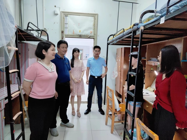 本网讯(通讯员  邓重阳)6月21日,计算机学院党委书记陈慧敏、副书记熊坤鹏带队u辅导员前往中九、中七宿舍开展下基层察民情解民忧暖民心实践活动,看望留校学生住宿情况并解决问题。