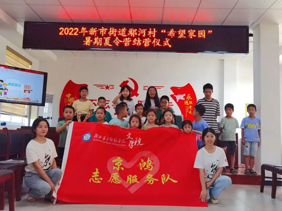 本网讯(通讯员 杨舒惠)2022年8月1日,湖北第二师范学京鸿志愿服务队暑期社会实践迎来了最后一天,支各教点的小朋友们在志愿者老师的指导下,纷纷进行了结业汇报表演。在结业仪式上,实践团队志愿者与孩子们共同汇报了演出了手势舞《青年志愿者之歌》。接着,汇报演出上同学们一起深情地朗诵《水调歌头》,并向家长们展示了支教成果。最后,实践队志愿者上台总结发言,向大家分享自己的心得与感悟。此次结业仪式在当地村委会、实践团队志愿者、参加仪式的家长和学生的支持下圆满完成。