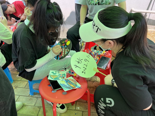 活动主要为中秋节团扇绘制,参与活动的同学们可以选择自己喜欢的团扇样式,与同小组的同学对团扇进行设计并上色。在此过程中,大家能够专注于色彩的选择与搭配,进而忘记心灵的烦恼,缓解心理压力。
