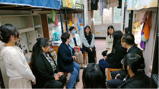 本网讯(通讯员 桂利军)10月6日下午,外国语学院领导班子成员、“师友·学友行动”联系部门“两训”中心和国际交流合作处领导老师以及辅导员等一行对新生宿舍开展走访慰问活动,给同学们送去温暖与关怀。