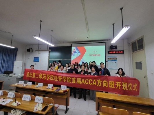 本网讯(通讯员 黄乐)2月27日晚,我校经济与管理学院在二号楼2202教室举办首届ACCA方向班开班仪式。经济与管理学院党委书记刘元锋、副院长陈艳明、ACCA中国区武汉分公司负责人徐鑫、财务管理专业负责人李岚及2022级财务管理专业辅导员叶莹参加本次活动,ACCA方向班全体同学参会,ACCA方向班班主任高灿主持本次活动。