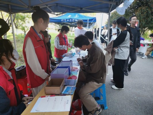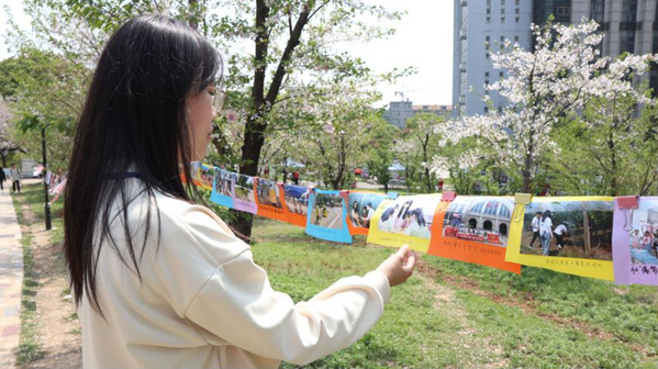 在倍阅书店门口樱花树下的志愿服务“集市”上,公益义卖、安全宣讲、急救培训、文明礼仪、知识科普、垃圾分类......24项与大学生生活息息相关的志愿服务项目集中“摆摊”,让前来“赶集”的学生深切感受到志愿精神在校园传递。在樱花大道上,来自13个学院的23个志愿服务团队以精美小图片呈现志愿服务的精彩瞬间,别具一格,引得不少同学驻足欣赏。