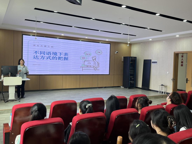 本网讯(通讯员 陈颖颖)我校2023年度师范生《演讲朗诵脱口秀》竞赛已于近期启动,共有30多位来自不同学院的选手入围校级决赛。为配合此次竞赛,教师教育学院特邀请来自湖北艺术职业学院的许萌老师,为同学们带来了一场专题讲座。